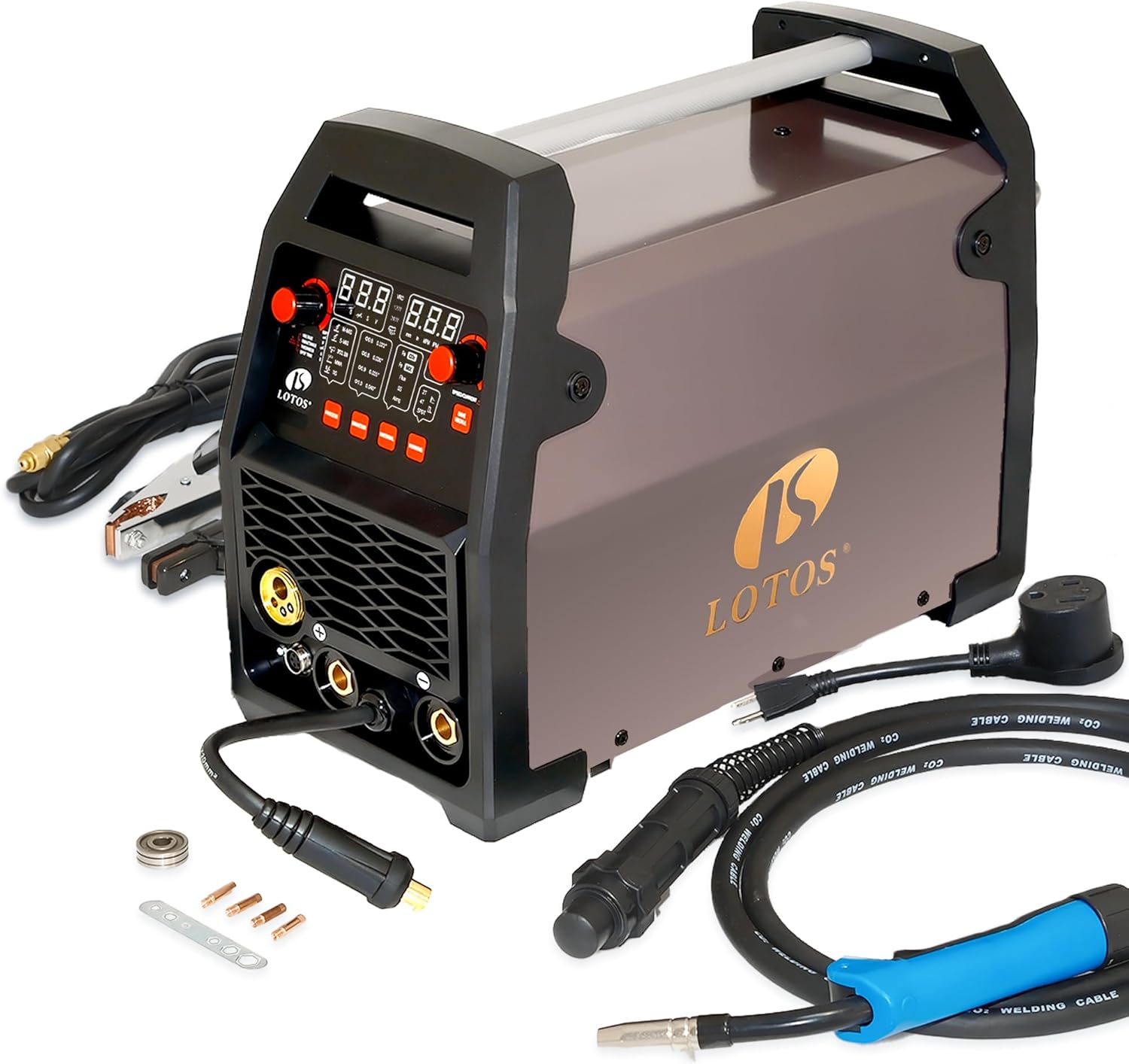 LOTOS MIG180 180A MIG Welder, 6 in 1 Gas MIG, Gasless Flux Core MIG, Stick, Lift TIG, Spot, Spool Aluminum Multi Process Welding Machine, Auto MIG Synergistic Setting & Voltage Fine Tuning, 120/240V
